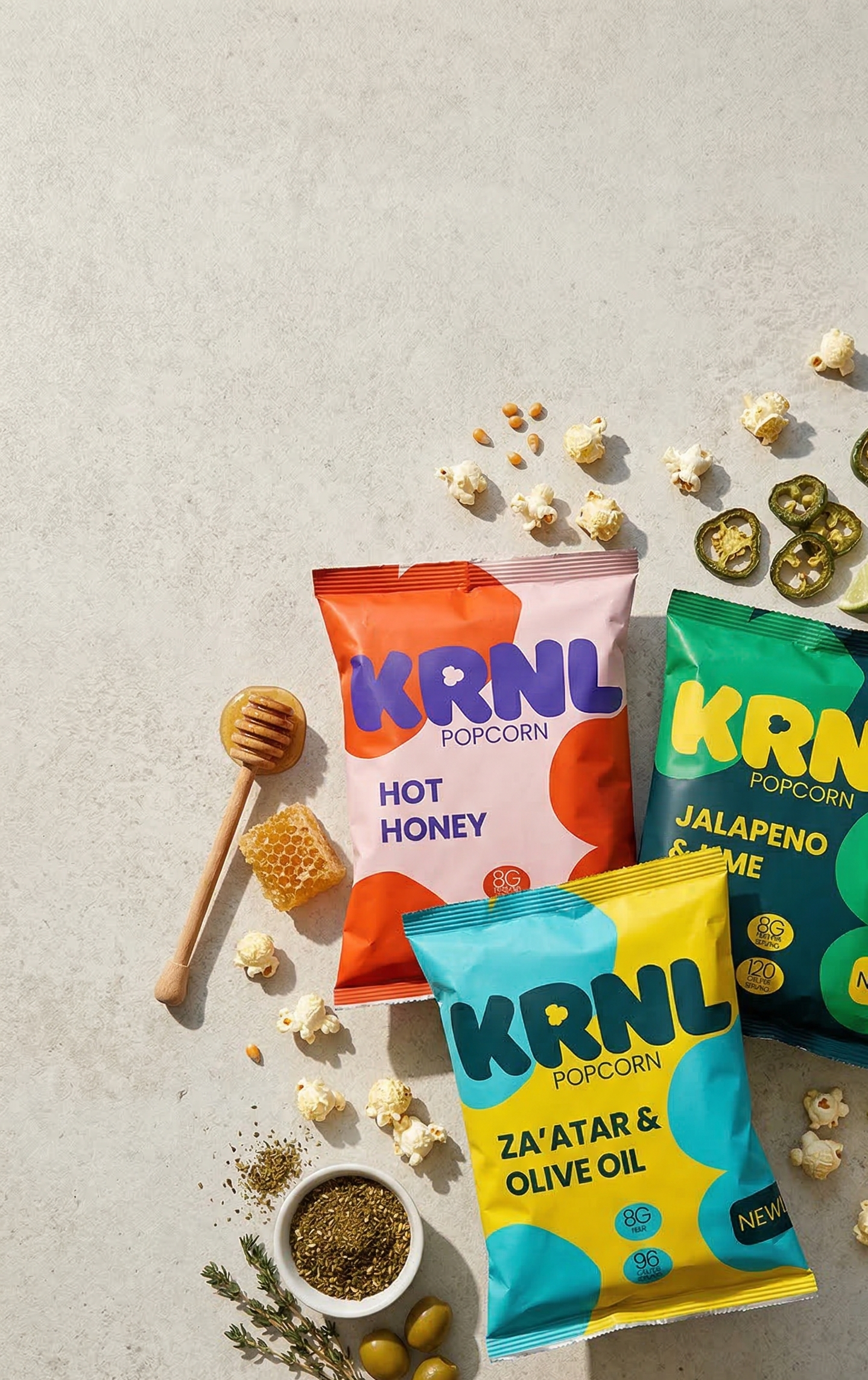 KRNL is on a mission to bring unforgettable excitement back to snacking. Bold, exciting flavours without compromising on health benefits. This is popcorn that you look forward to all day.